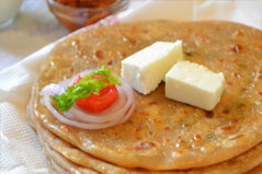 Punjabi style paratha stuffed with crumbled, spiced cottage cheese.